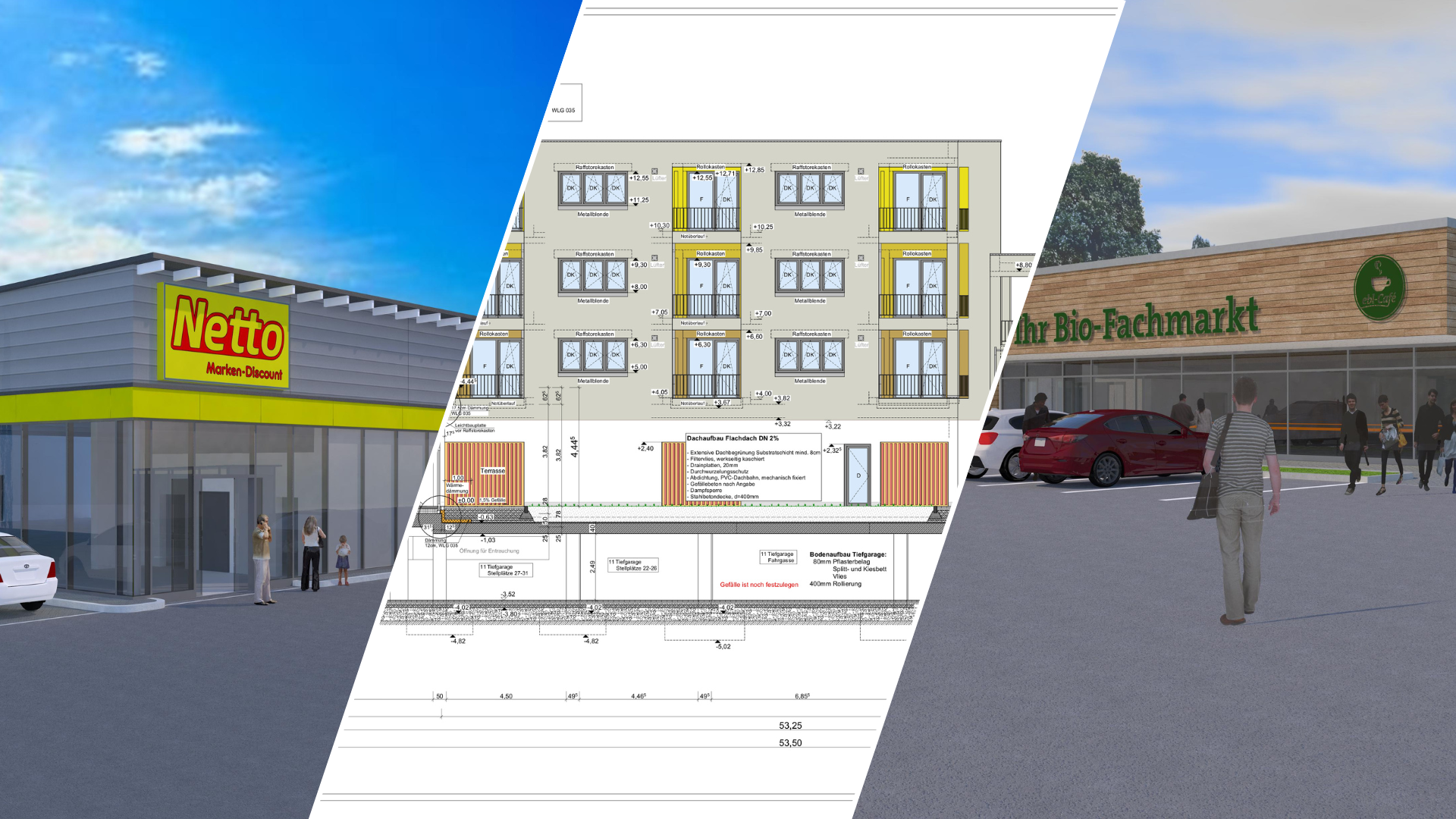 Verschaffen Sie sich einen Überblick über unsere bisherigen Projekte. Diese erstrecken sich von Verbrauchermärkten über Gewerbe- und Wohnungsbauten bis hin zu Sport- und Freizeitstätten.